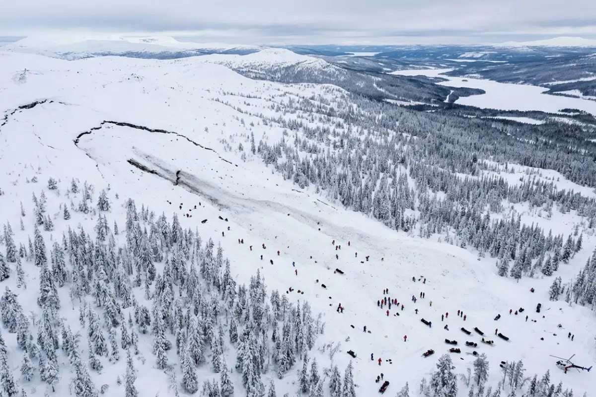 Med den närmsta liften endast 500 meter bort är närheten till skidbackarnas trygghet bedräglig. Den vita väggen har stannat upp, men arbetet med att försäkra sig om att ingen dragits med i djupet fortsätter med oförminskad styrka. I den kalla fjälluften arbetar räddningsmanskapet metodiskt genom snömassorna, medan de anhöriga och turister i området väntar på besked.
