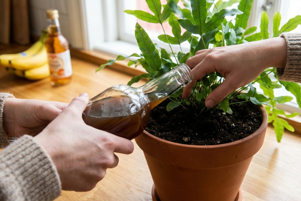 Ett sista tips: Undvik att spraya blandningen direkt på bladen, då vinägerns surhet kan orsaka brännskador. Fokusera istället på att vattna jorden runt plantan så att rötterna kan ta upp all härlig näring!