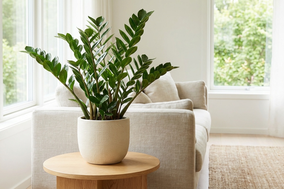 Växtinredaren Leila Anttalainen från Kukkatalo Maritta berättar att det finns en specifik krukväxt som i sin enkelhet står över alla andra: garderobsblomman (Zamioculcas zamiifolia).