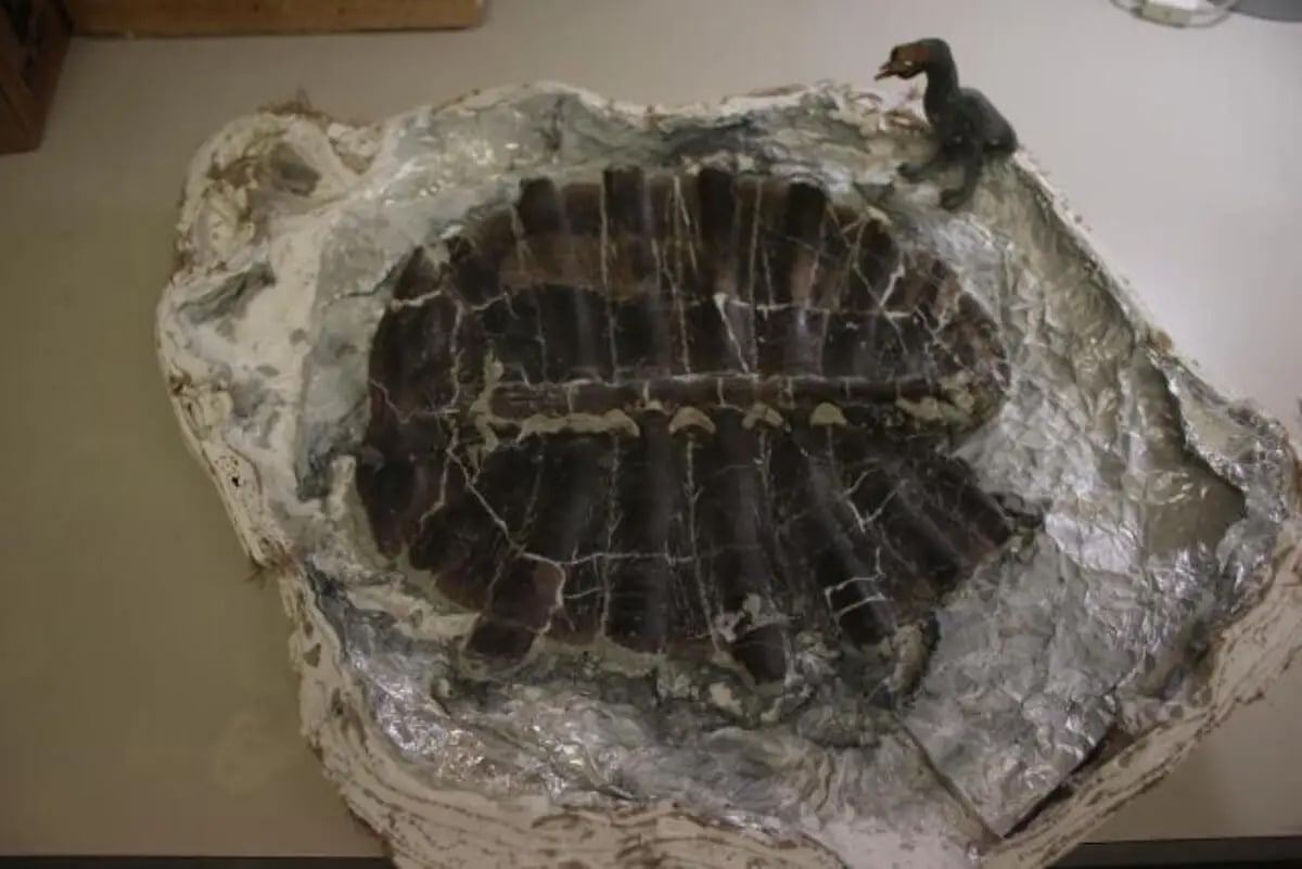 Den hittade sköldpaddan begravdes i ett av dessa avlagringar. Snabb begravning är avgörande för fossilisering, eftersom det begränsar nedbrytningen och skyddar benen eller skalet från erosion. Med tiden ersätter mineraler i omgivningen gradvis de ursprungliga vävnaderna och bevarar organismens form. Denna process förklarar varför det är möjligt att hitta så väl definierade strukturer miljontals år senare.