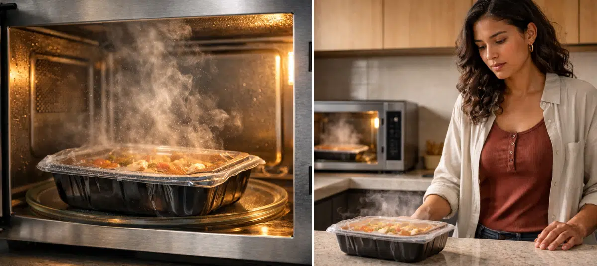 Siffrorna är ganska chockerande. En av de granskade undersökningarna fann mellan 326 000 och 534 000 mikroplastpartiklar i maten efter bara fem minuter i mikrovågsugnen. Detta är mellan fyra och sju gånger högre än när samma typ av förpackning värms i en vanlig ugn. Mikroplaster är mikroskopiska fragment som lossnar från materialet när det utsätts för intensiv värme och blandas med din mat utan att du märker det.