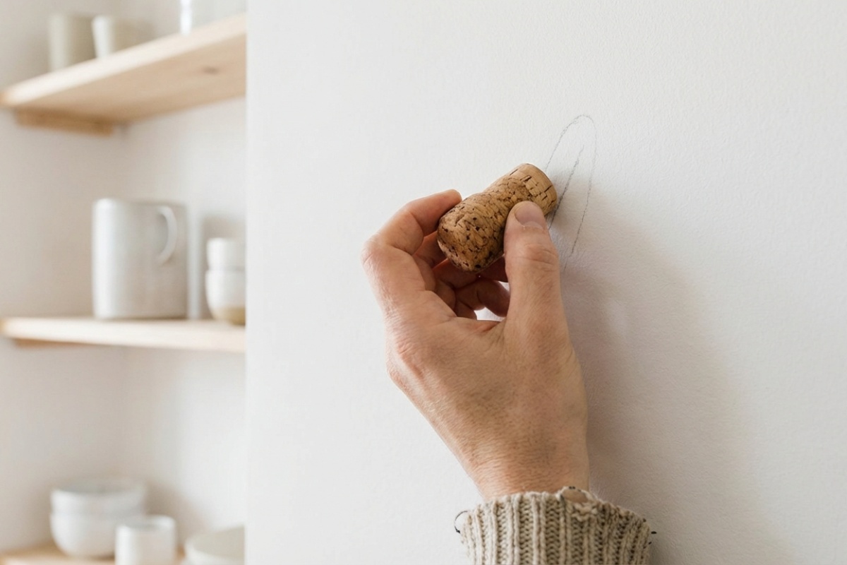 Hemligheten ligger i korkens unika struktur. Det naturliga materialet är tillräckligt mjukt för att inte repa eller lyfta färgen från underlaget, men samtidigt tillräckligt strävt för att effektivt fånga upp och lyfta bort smuts som sitter på ytan. Det är ett perfekt exempel på hur vi kan återanvända vardagsföremål som annars skulle hamna i papperskorgen.