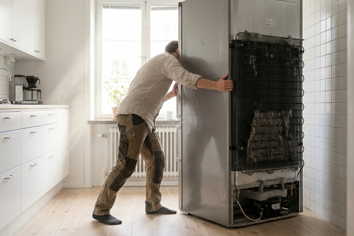 När vi inreder ett kök eller installerar ett nytt kylskåp är den första impulsen att skjuta det så tätt mot väggen som möjligt för att vinna plats. När apparaten väl är på plats står den där, ofta i ett helt decennium. Vi rengör noggrant hyllorna på insidan, avfrostar frysen och torkar av dörren, men baksidan förblir totalt osynlig och oåtkomlig. Det är precis här problemet ligger. Denna mörka zon mellan apparaten och väggen blir den perfekta samlingsplatsen för damm och smuts.