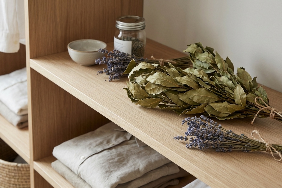 En oväntad allierad i kampen mot mal är lagerblad. Dessa blad avger en intensiv doft som avskräcker skadedjuren. Det är enkelt att använda: det går bra att placera torkade lagerblad direkt på hyllorna eller tillverka små tygpåsar fyllda med dessa blad, vilket dessutom kan bli ett vackert inslag i garderoben.