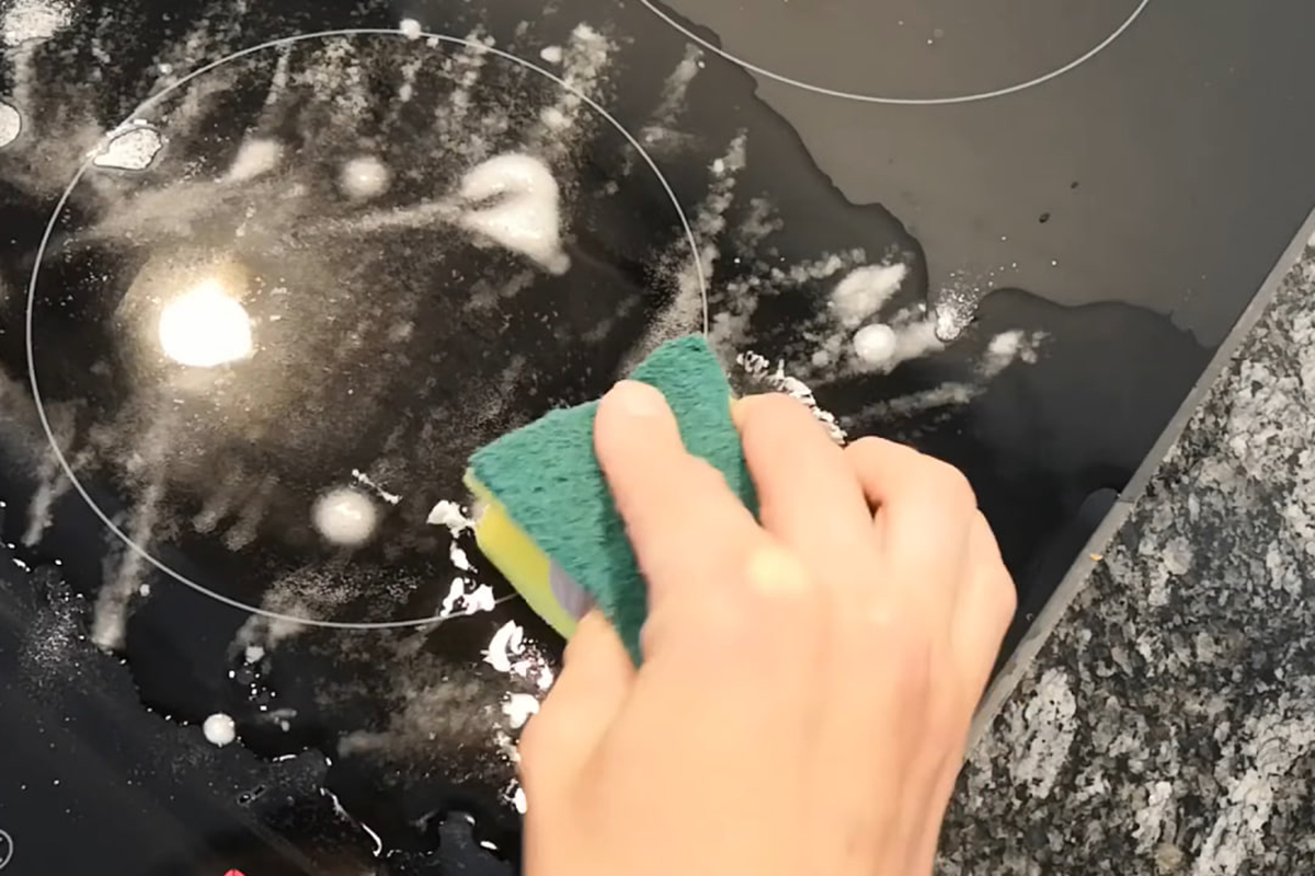 För att rengöra spisen med denna blandning rekommenderas följande steg: