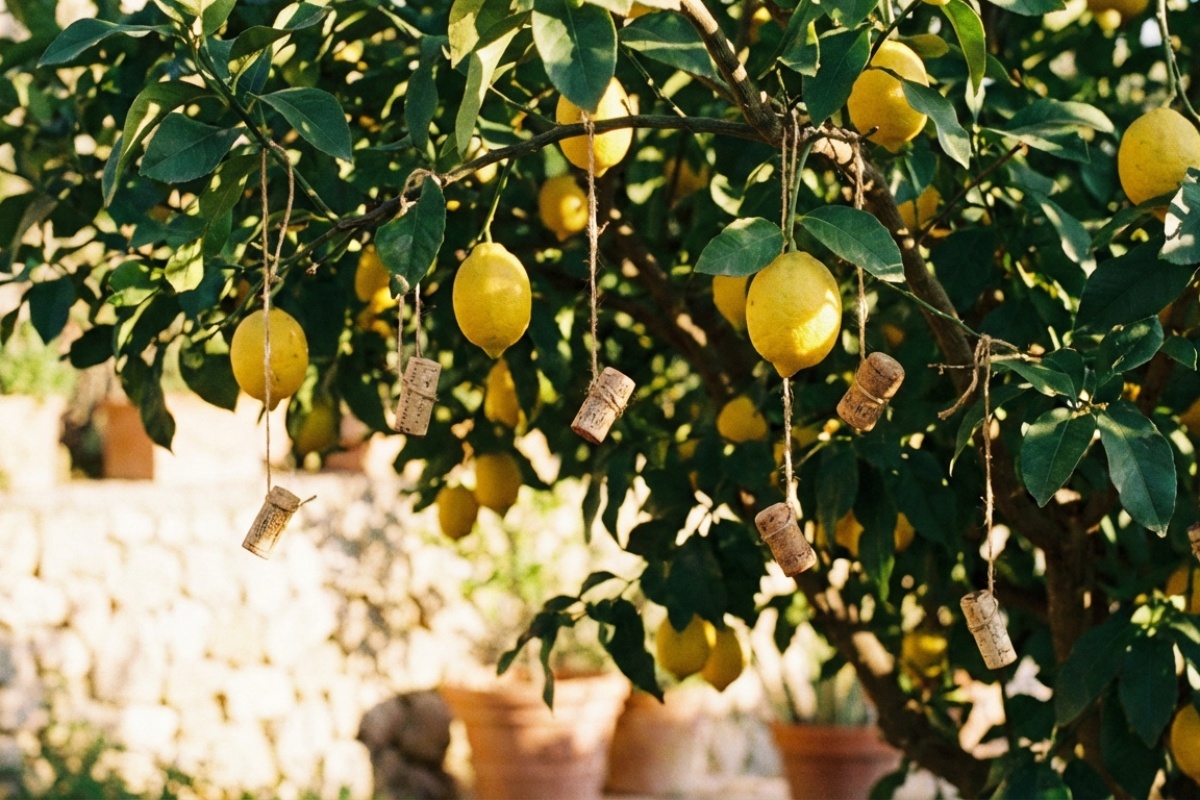 Första gången man ser det kan man tro att det är ett skämt eller resterna av en bortglömd fest. Små bruna vinkorkar som dinglar lojt från grenarna på ett citronträd, likt små lyktor i vinden. Men bakom den anspråkslösa fasaden döljer sig en metod som sprider sig från trädgård till trädgård som ett tyst rykte.