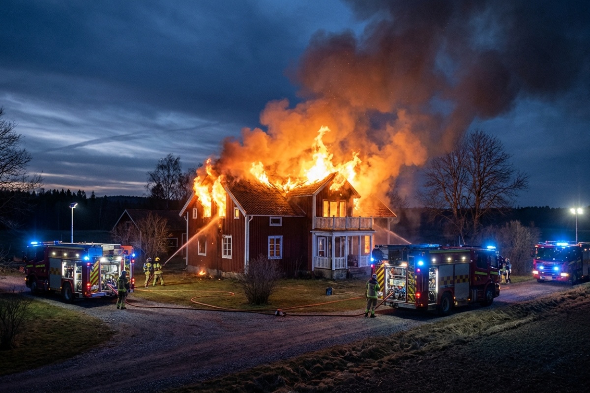 Morgonens stillhet i Kristinehamn bröts abrupt när lågorna tog ett järngrepp om en villa på fredagsmorgonen. Vid 04.42 kom det första larmet till SOS Alarm, och vad som mötte räddningstjänsten var en fullt utvecklad brand där huset redan var helt övertänt. Det var en syn som mötte både räddningspersonal och grannar med fasa.